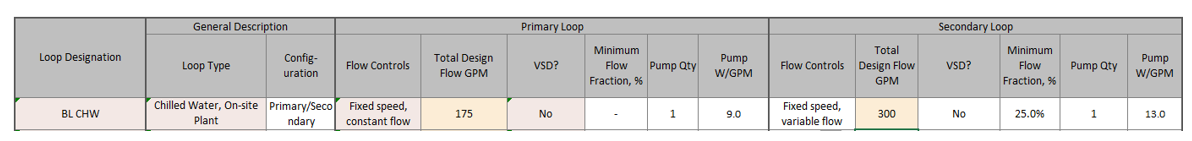 CHW plant loop arrangement and controls are reported in Table 6a of the Budget HVAC ECB tab