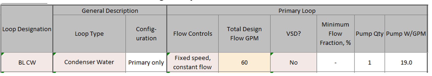 If proposed/budget/baseline design includes chilled water, hot water or condenser loops based on