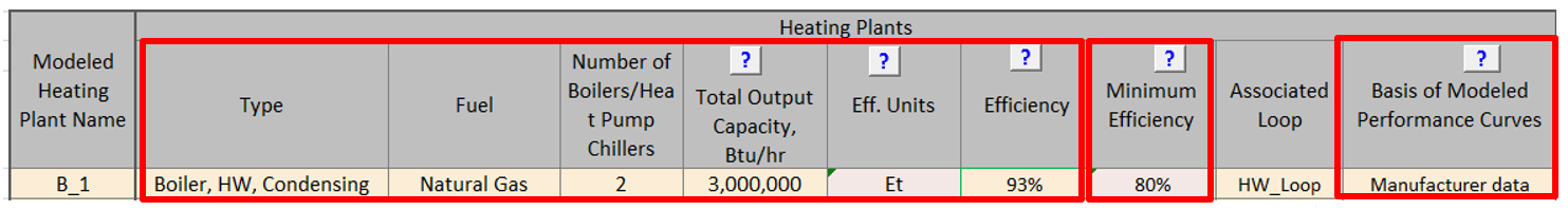 WHVAC12–B Properties of the space heating boilers in the budget/baseline design reported in the Compliance Form are established correctly