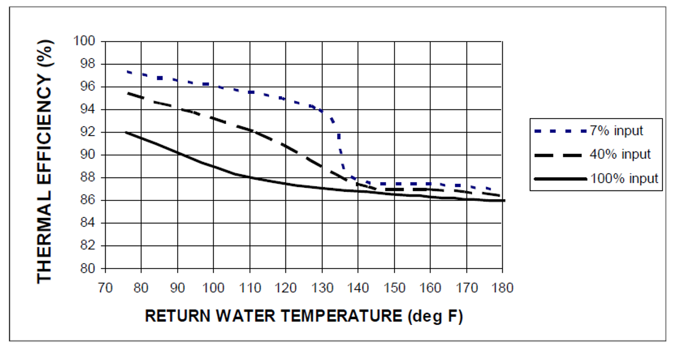 the boiler with AHRI efficiency and performance characteristics at various return water