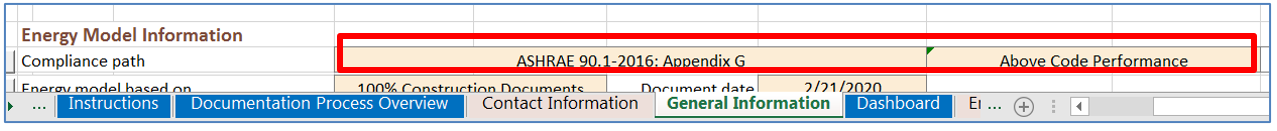 project is documenting above-code performance following 90.1 PRM, as indicated in the General Model Information section of the General Information tab. In this case, supporting documentation must be included in the submittal to justify the modeled difference.