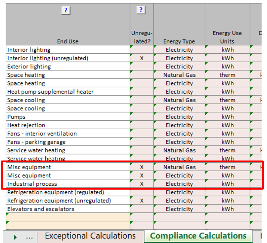 - Reporting all refrigeration systems as unregulated loads on the Compliance Calculations tab. Energy used by units included in 90.1 2016/2019 and 2022 Table 6.8.1-13/6.8.1-11 must be reported under “Refrigerated Equipment, regulated”.