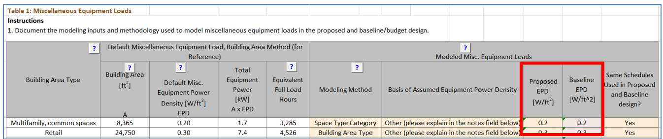 baseline/budget equipment power density (EPD) must be equal to proposed except when the