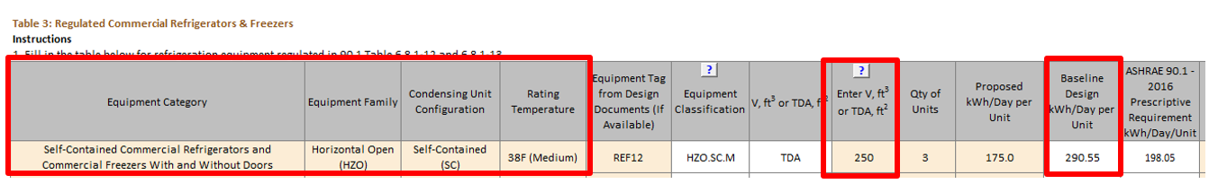 - Verify that proposed kWh/day does not exceed corresponding 90.1 requirements shown in the table. Since these requirements are mandatory, all specified units must have lower rated kWh/Day consumption.