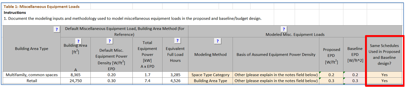 reported in Table 1 of the Plug, Process and Other Loads tab of the Compliance Form. The